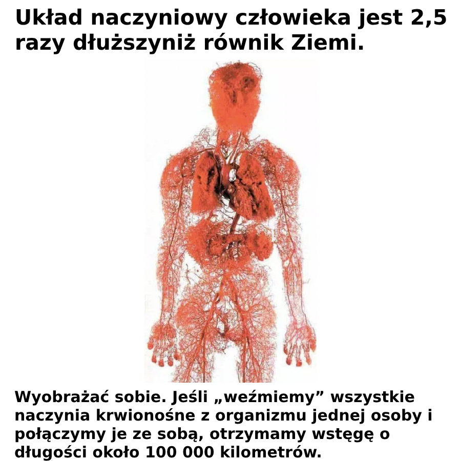 A równik Ziemi ma 40 000 kilometrów długości. Okazuje się, że naczynia krwionośne tylko 1 osoby są wystarczająco długie, aby okrążyć planetę 2,5 razy.